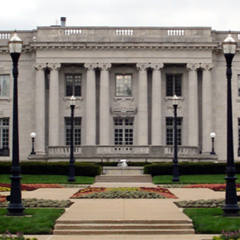 Het Kentucky Governor's Mansion staat als een majestueuze Beaux Arts-structuur met symmetrische gevels, stenen details en architecturale elementen geïnspireerd door het Petit Trianon van Versailles.