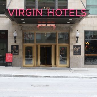 Het Virgin Hotels Chicago bevindt zich in een 27 verdiepingen tellend gebouw van kalksteen en baksteen met Art Deco elementen en geometrische terracotta ornamenten.