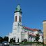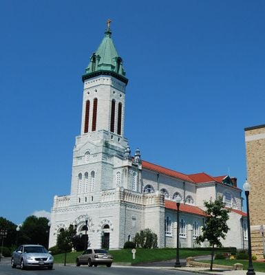 De Notre Dame Katholieke Kerk staat op 446 Main Street met een toren van 64 meter, een lengte van 58 meter en een schip van 23 meter.