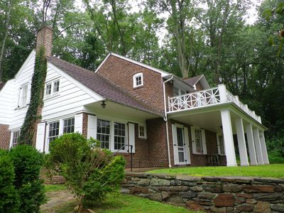 Het huis in Colonial Revival-stijl en het L-vormige atelier staan op 7.3 hectare grond, met een op het noorden gericht Palladiaans raam.