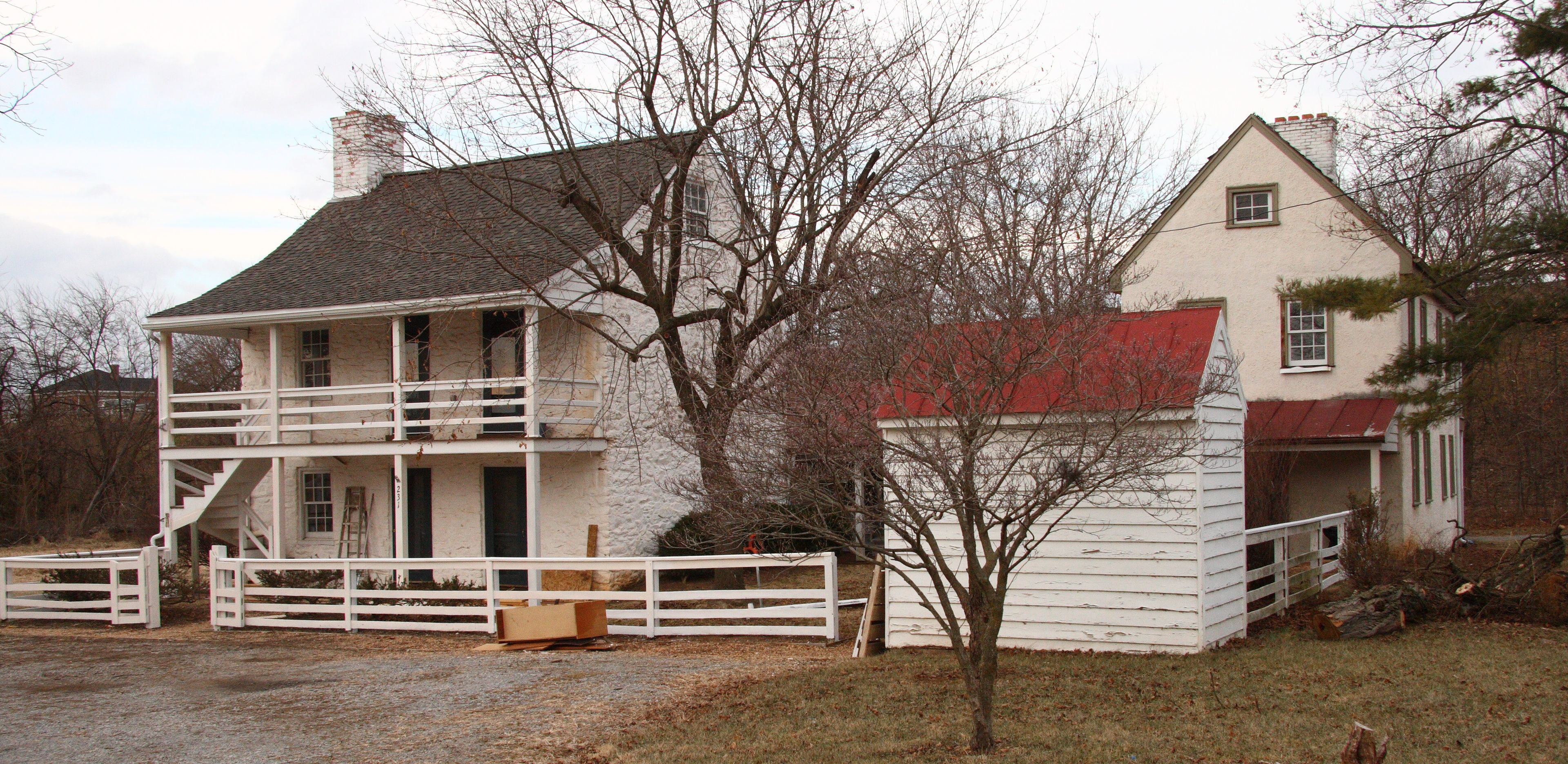 Deze L-vormige structuur van twee verdiepingen met centrale bakstenen schoorsteen staat op de kruising van Route 340 en County Road 27.