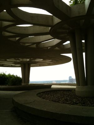 Het Daniel J. Ransohoff uitkijkpunt biedt uitzicht op Cincinnati's monumenten, waaronder Music Hall, Washington Park en Union Terminal vanaf zijn verhoogde positie.