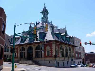 Het gebouw combineert meerdere architectonische elementen van de Stick, Queen Anne, Italiaanse, Romaanse, Vlaamse en Gotische stijlen in één structuur.