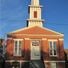 De Cumberland Presbyteriaanse Kerk toont klassieke architectuurelementen met zes houten Grieks-Dorische zuilen die een frontportiek en gepleisterde bakstenen gevel ondersteunen.