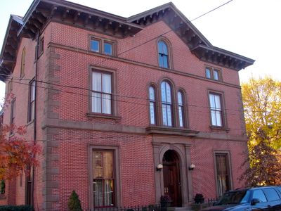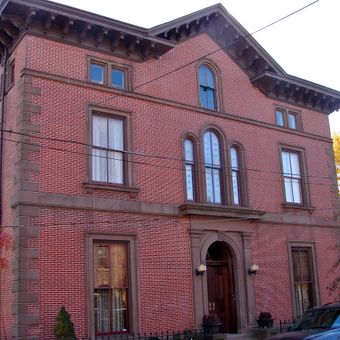 Gelegen aan 300 Radcliffe Street in Bristol, Pennsylvania, staat het landhuis in het historische district van Bristol en behoudt zijn originele kenmerken.