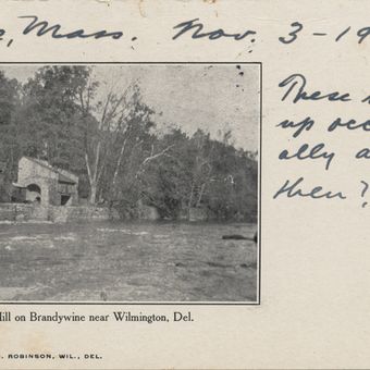 Eleutherian Mills is een voormalige kruitfabriek langs de Brandywine River in Delaware, met stenen gebouwen in Georgische stijl en bewaard gebleven productiestructuren. Het terrein strekt zich uit langs de rivieroever met molenraderen, kanalen en pakhuizen verbonden door paden tussen bomen.