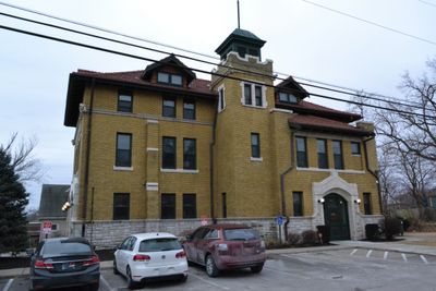 Brandweerkazerne Nr. 9 heeft drie verdiepingen gebouwd met bakstenen muren en staat op de kruising van South 14th Street.