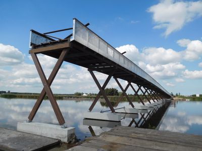 De Blauwe Loper verbindt Blauwestad en Winschoten met een 800 meter lange constructie over een meer, kanaal, snelweg en natuurreservaat.
