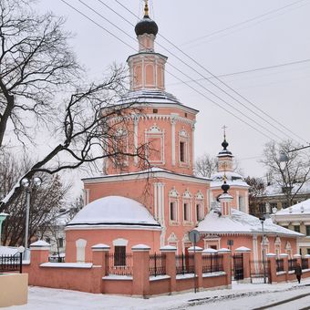 Deze bakstenen kerk uit 1696 onderging veranderingen tijdens het Sovjettijdperk toen ze in 1935 werd gesloten en de koepels werden verwijderd.