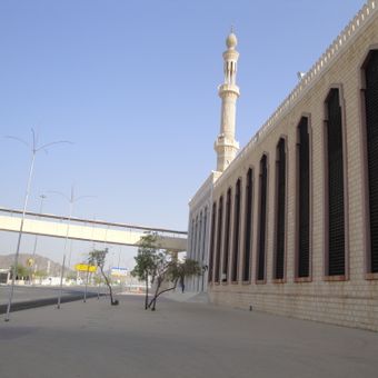 De moskee markeert de plaats waar Profeet Mohammed zijn afscheidspreek hield tijdens zijn laatste bedevaart in de achtste eeuw.